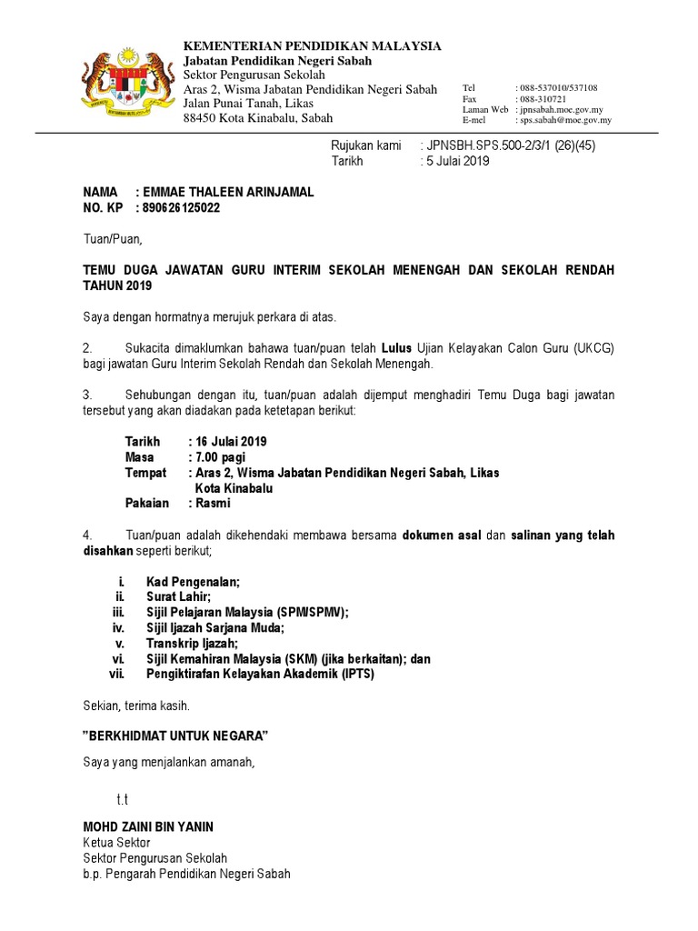Related : Surat Pengiktirafan Kelayakan Akademik / Slip keputusan peperiksaan peningkatan secara lantikan bagi pegawai peningkatan secara lantikan;.