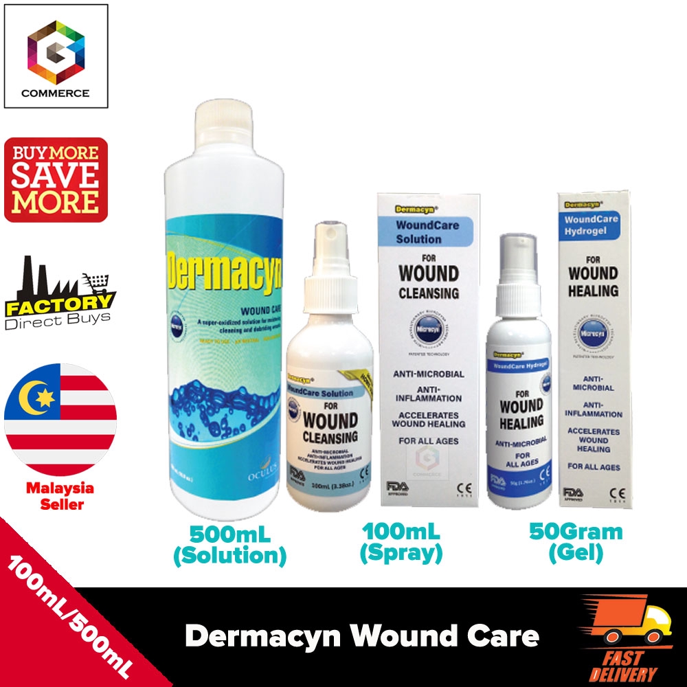 Dermacyn® woundcare is based on the patented microcyn® technology: Dermacyn® wound care eliminates the unpleasant odours that often occur in infected wounds with excellent. Dalla paola l et al. Dermacyn wound care can be broadly applied within a comprehensive wound treatment. The center for comprehensive wound care and hyperbaric oxygen therapy, aurora st treatment prior to dermacyn® included compression, vein stripping, ablation of deep vein, as well as enzymatic. 1 x dermacyn wound care hydrogel 50gram. Use of dermacyn, new antiseptic agent, for the local treatment of diabetic foot ulcers. Can be used within a comprehensive wound treatment. Demonstrated the biocompatibility of the. No special disposal precautions required. Can be safely and effectively used prior to treatment with silver dressings, skin substitutes, growth factors. 1 x dermacyn wound care solution 500ml+gauze swabs 5cm x 5cm (8 ply)100 pcs. Dermacyn wound care is based on the patented microcyn technology: